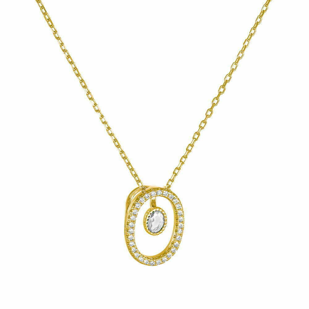 Κολιέ ροζέτα με οβάλ σχήμα και λευκή πέτρα ζιργκόν στο κέντρο