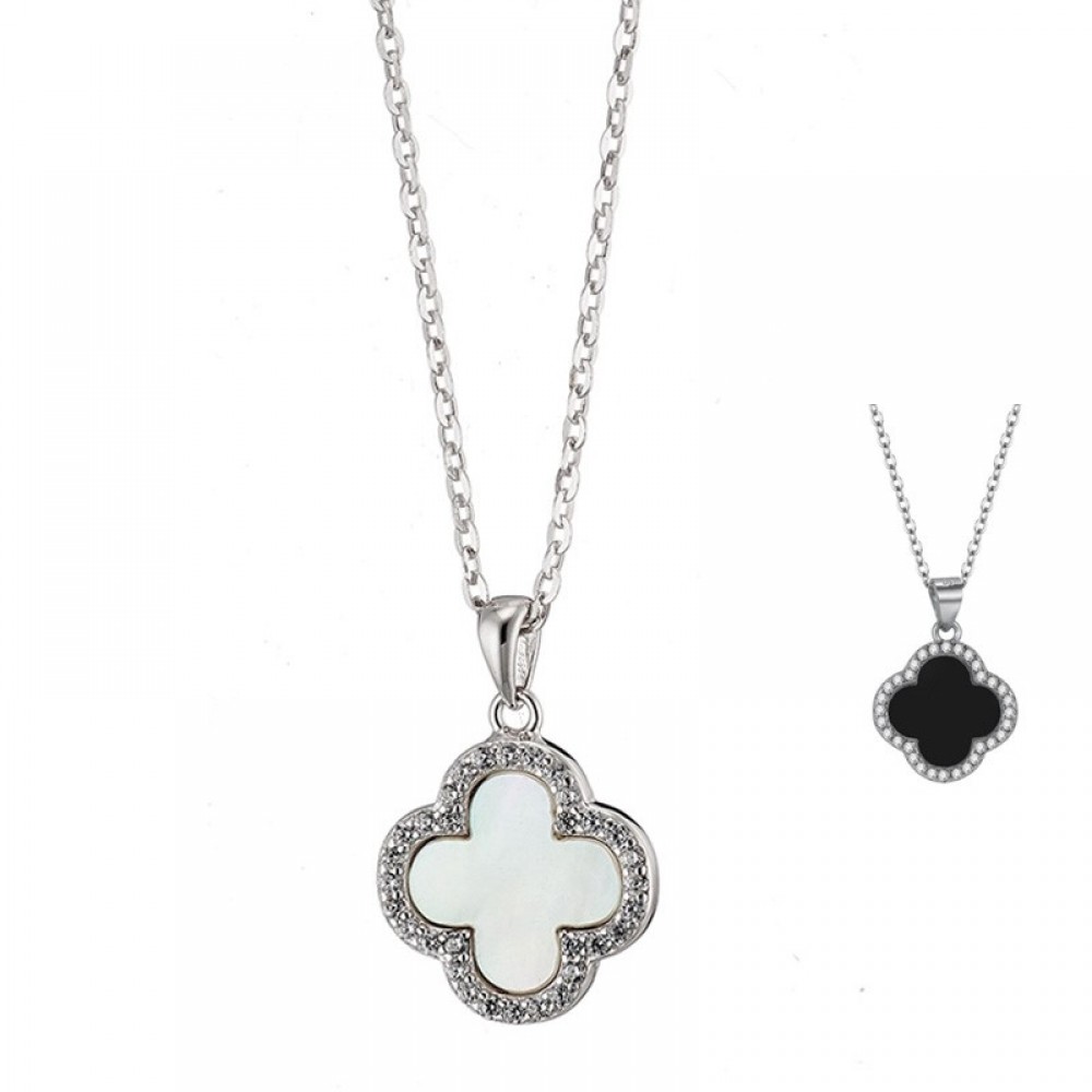 Κολιέ με "clover" διπλής όψεως με ημιπολύτιμες πέτρες φίλντισι και όνυχα