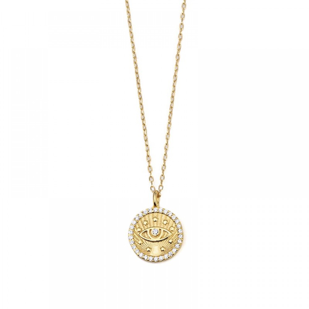 Κολιέ με κρεμαστό δίσκο με ανάγλυφο μάτι και αστεράκια