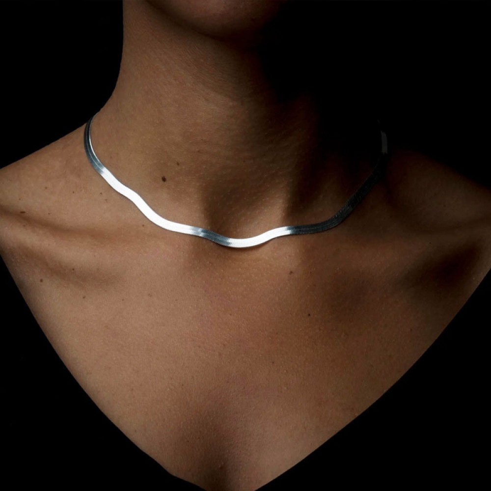 Ασημένια φαρδιά αλυσίδα (snake) με λουστρέ φινίρισμα