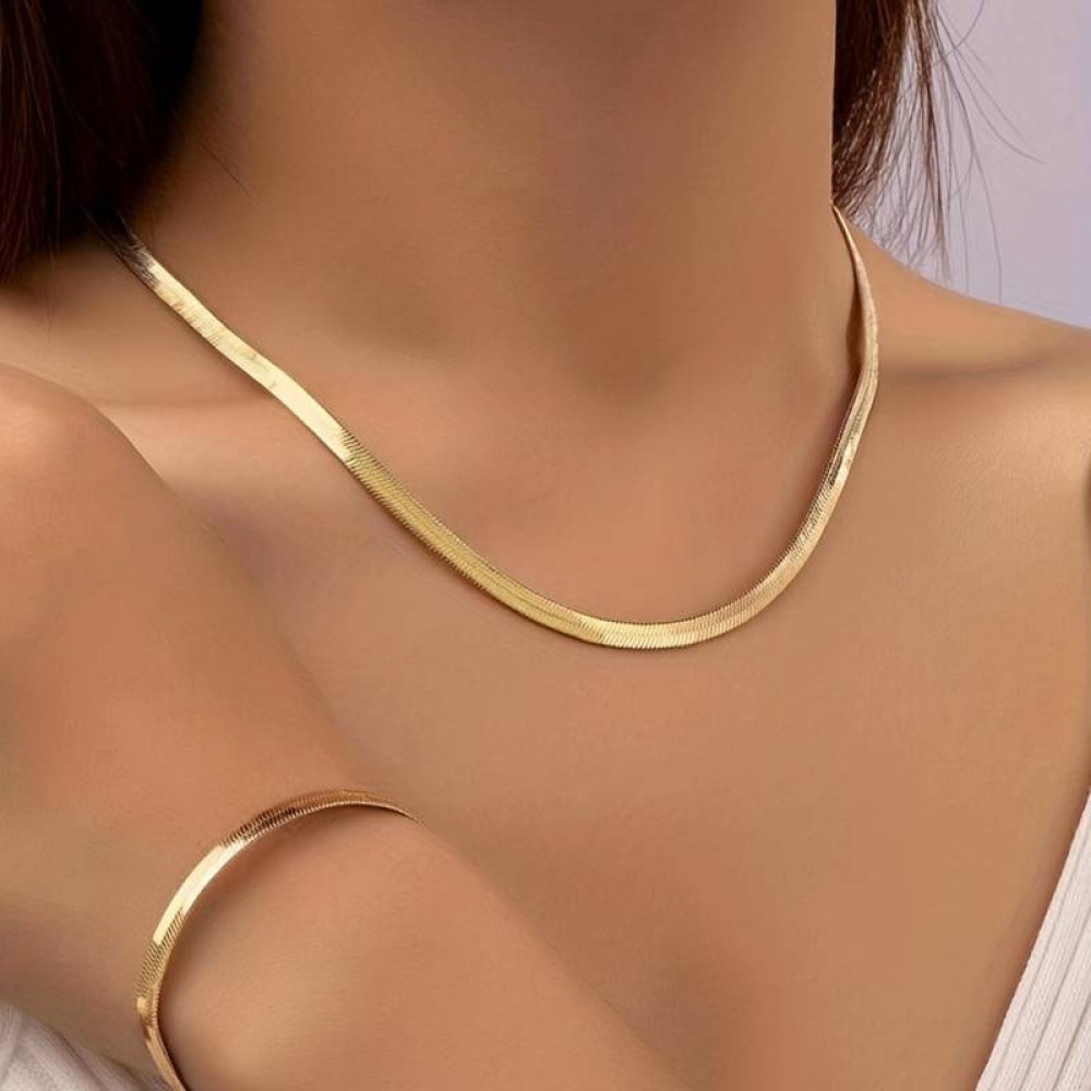 Ασημένια και επιχρυσωμένη φαρδιά αλυσίδα (snake) με λουστρέ φινίρισμα
