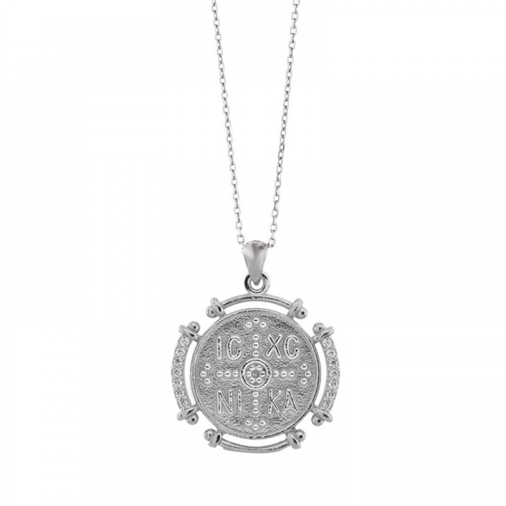 Κολιέ με φυλαχτό - κωνσταντινάτο διπλής όψης με πέτρες ζιργκόν στο πλάι