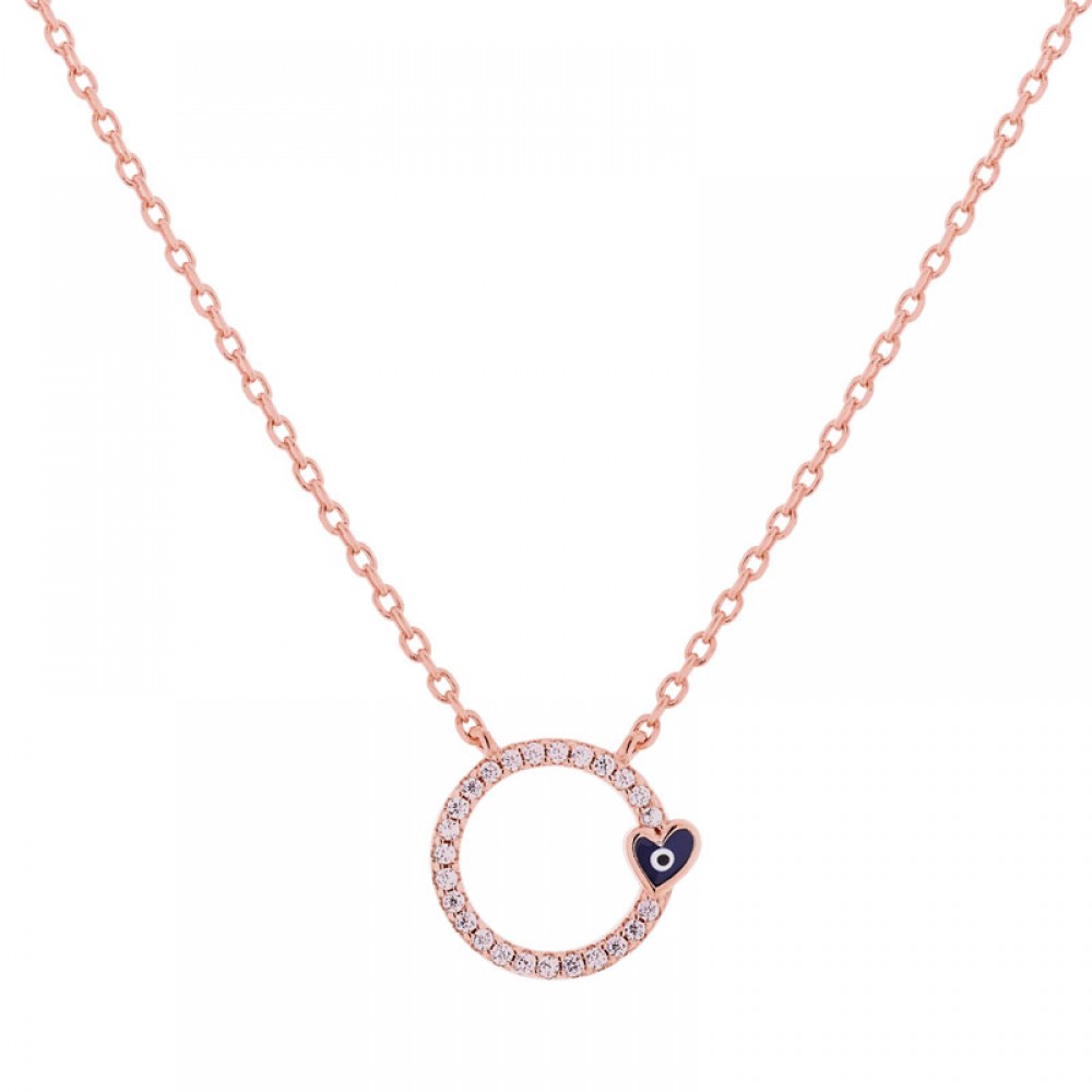 Ασημένιο κολιέ με κύκλο από λευκά ζιργκόν και μικρό μάτι καρδιά