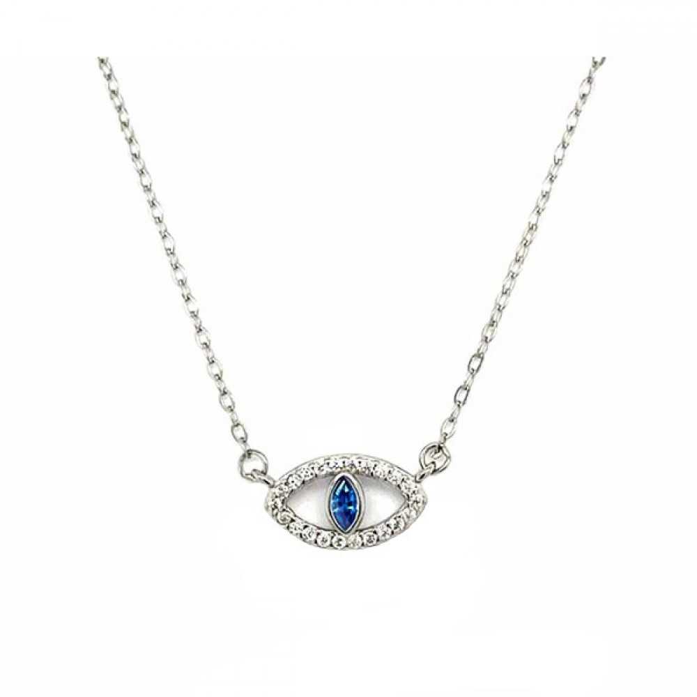 Διακριτικό κολιέ με μάτι και πέτρα aqua-marine