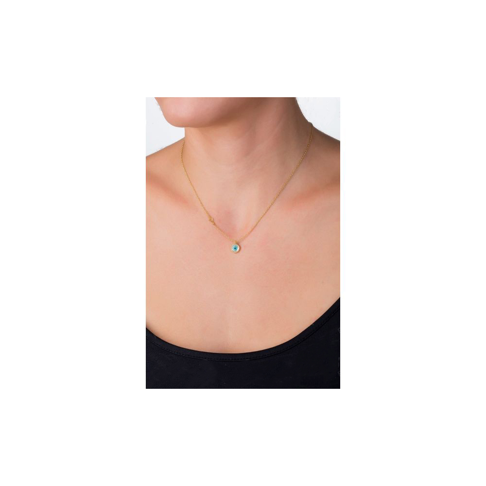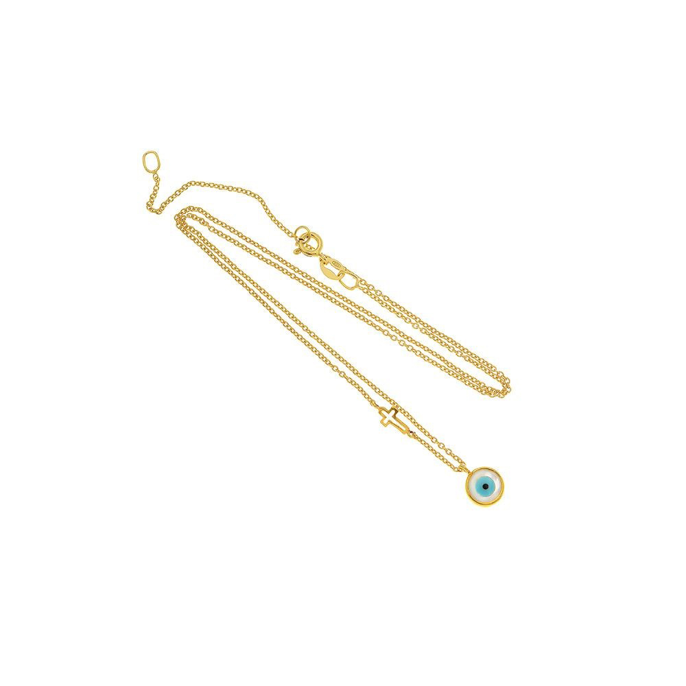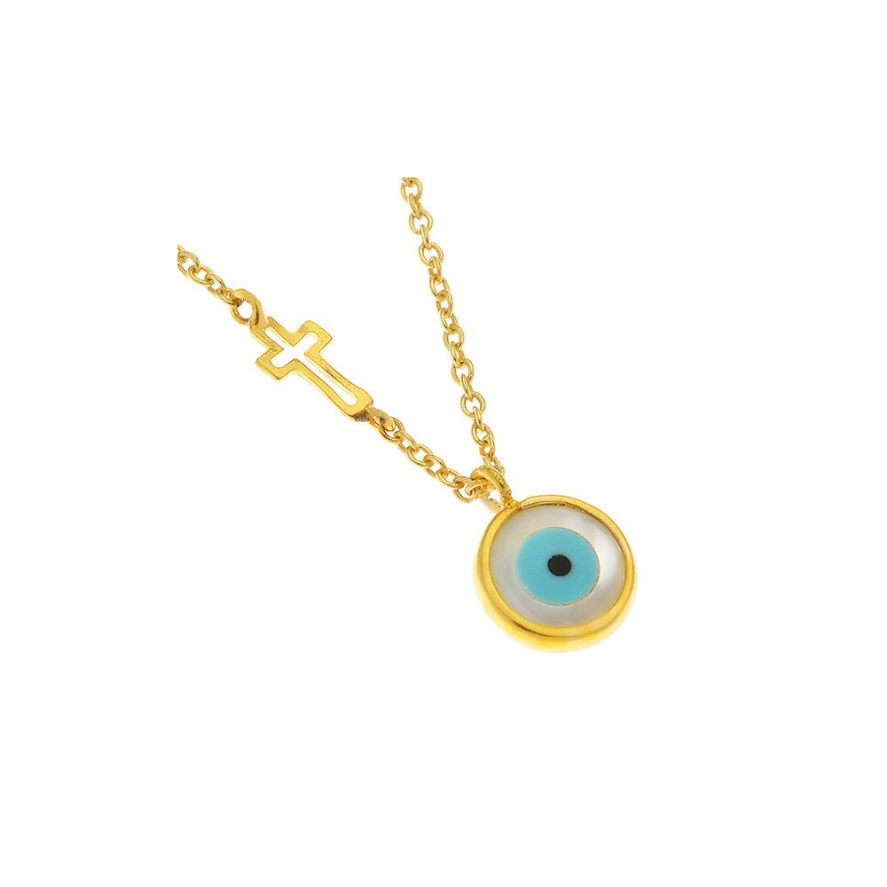 Κολιέ με μάτι από φίλντισι και σταυρό στο πλάι , κατασκευασμένο από ασήμι 925° επιχρυσωμένο με κίτρινο χρυσό.