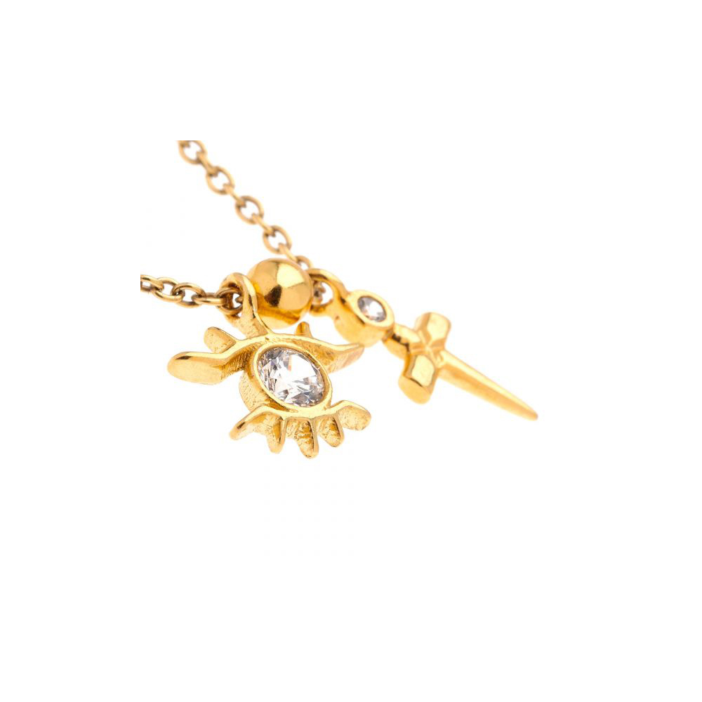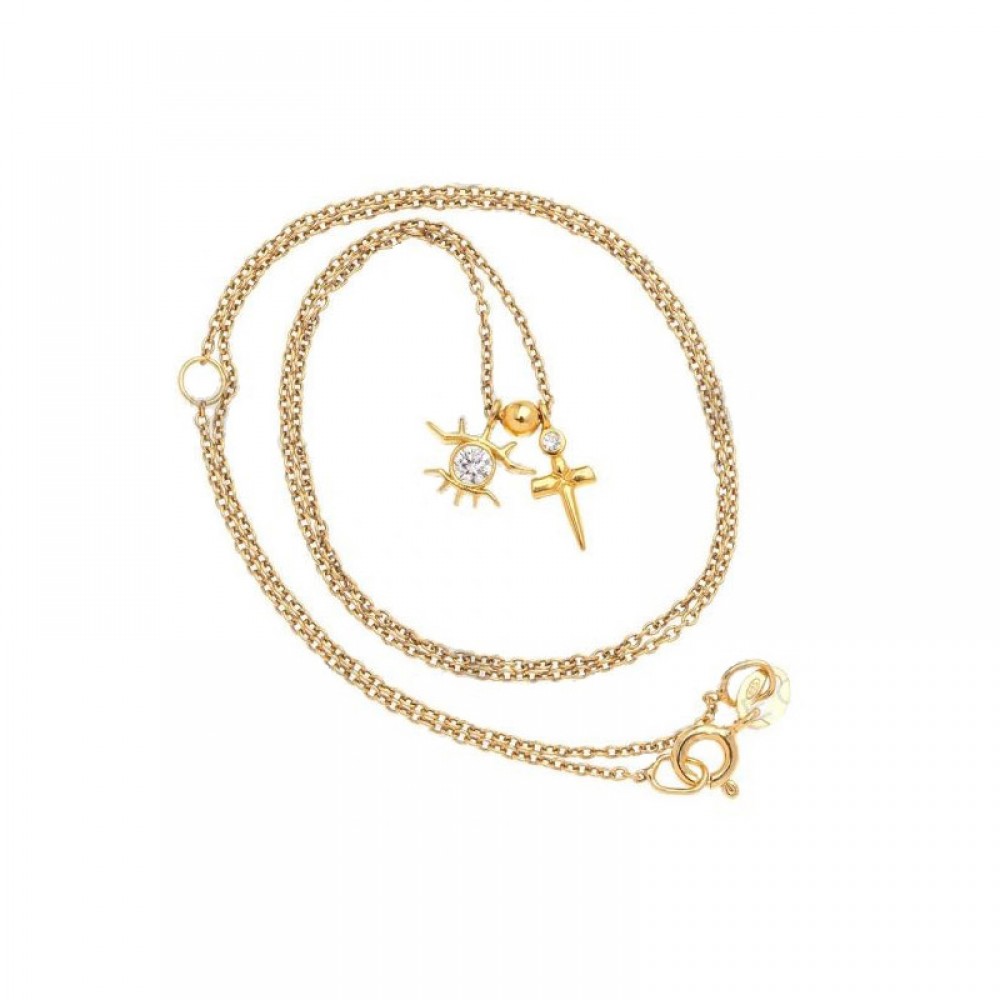 Κολιέ με μικρό μάτι και σταυρό κατασκευασμένο από ασήμι 925° επιχρυσωμένο με κίτρινο χρυσό και πέτρες λευκά ζιργκόν.