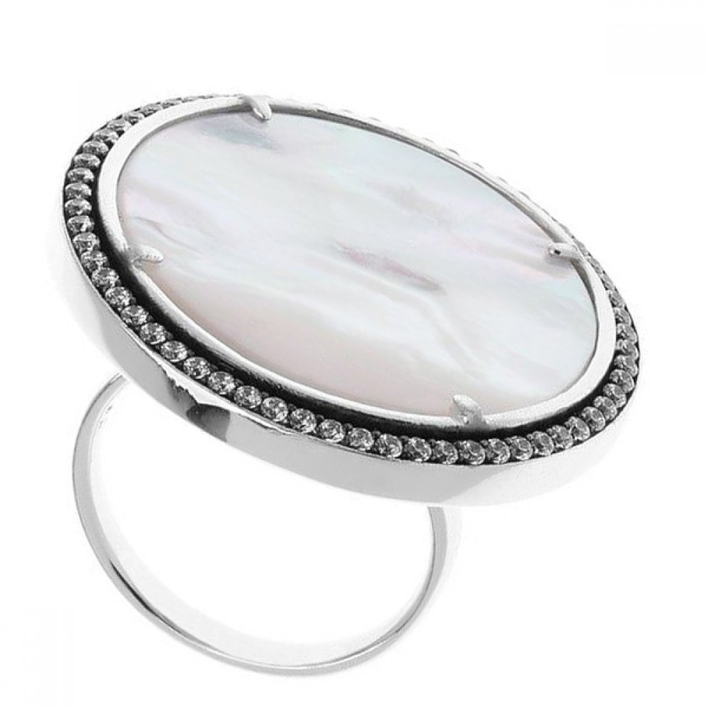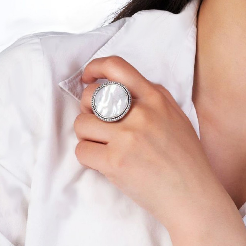 Ασημένιο εντυπωσιακό δαχτυλίδι - μεγάλος δίσκος με πέτρα φίλντισι