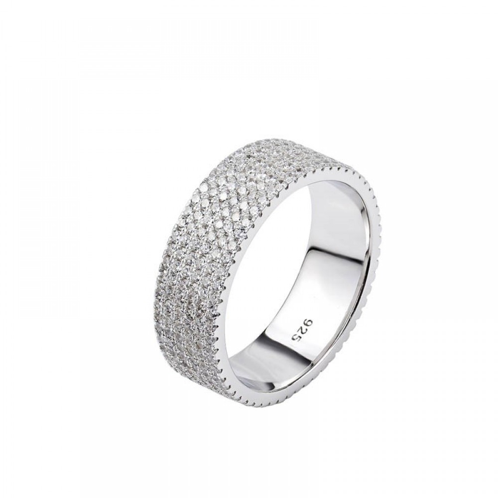 Ασημένιο δαχτυλίδι ολόβερο με έξι σειρές πέτρες ζιργκόν