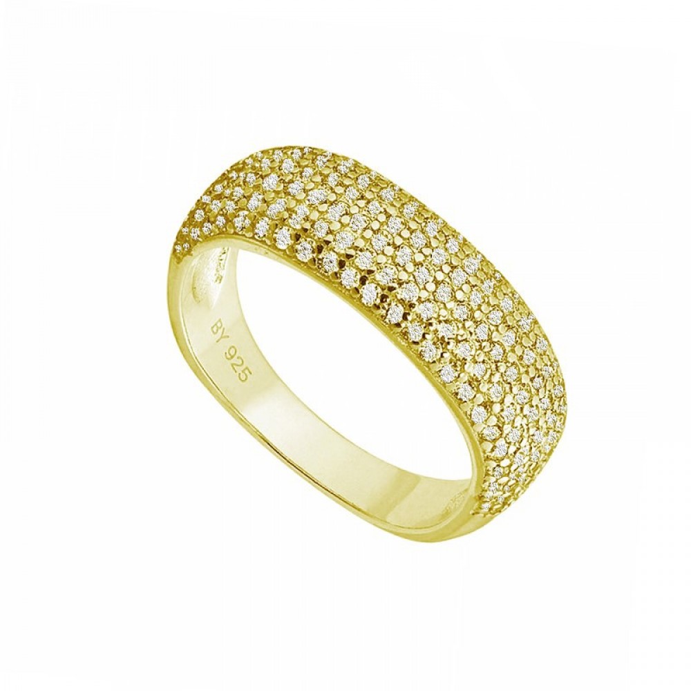 Ασημένιο πολύσειρο δαχτυλίδι σε τετραγωνισμένο σχήμα με πέτρες ζιργκόν , επιχρυσωμένο