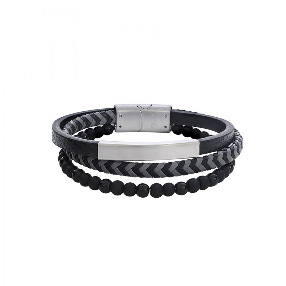 Ατσάλινο ανδρικό βραχιόλι με δέρμα και χάντρες
