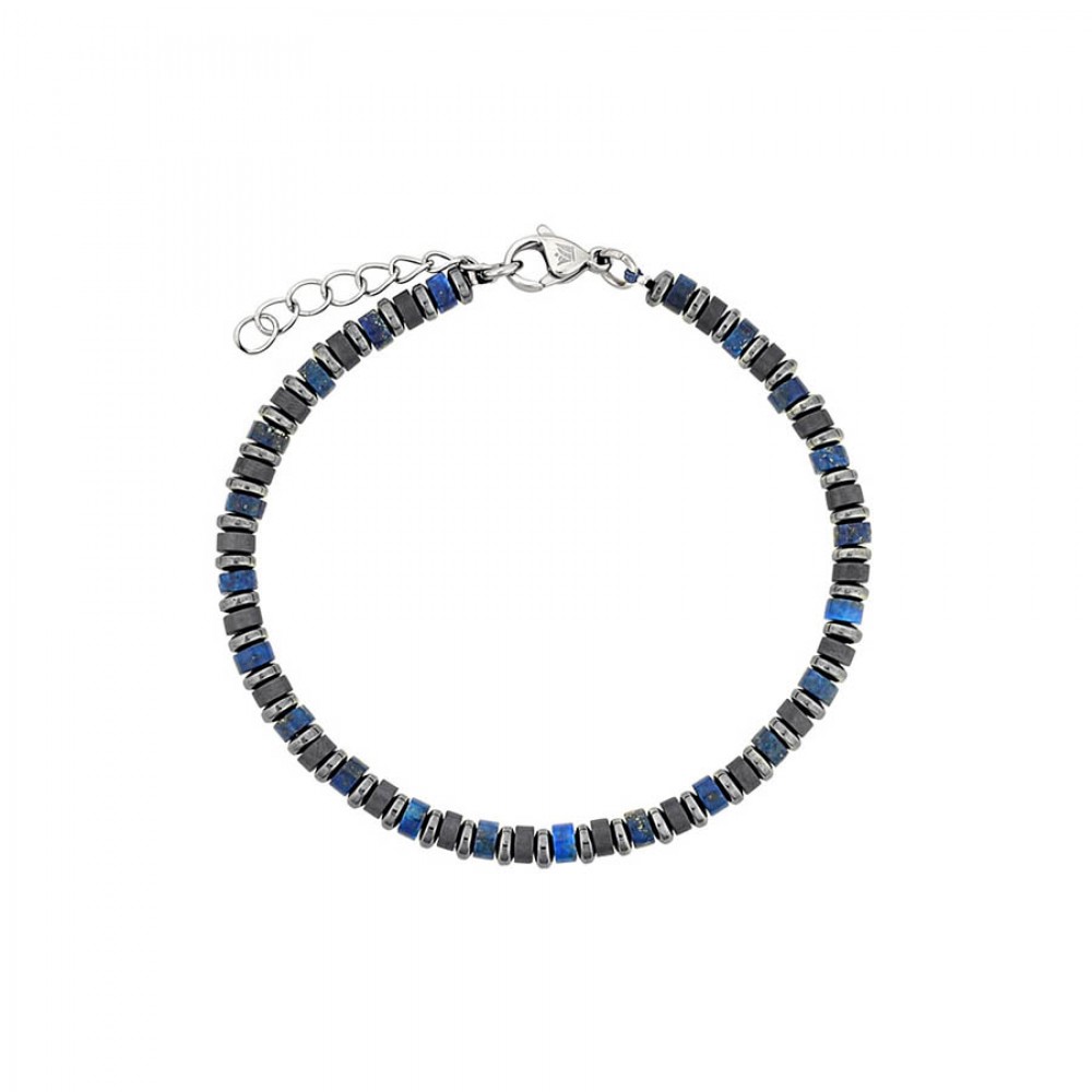 Ανδρικό βραχιόλι από ατσάλι με χάντρες γκρι και μπλε