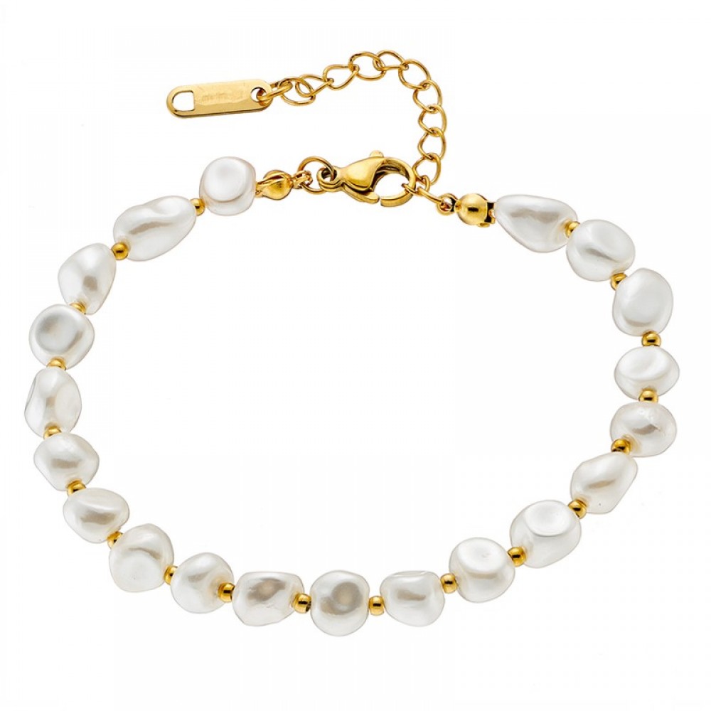 • Ατσάλινο βραχιόλι με πέρλες με ακανόνιστο σχήμα , επιχρυσωμένο
