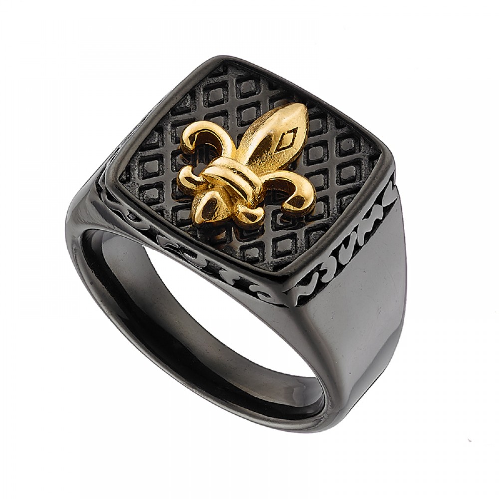 Δαχτυλίδι κατασκευασμένο από ατσάλι σε μαύρο χρώμα με χρυσό σχέδιο .