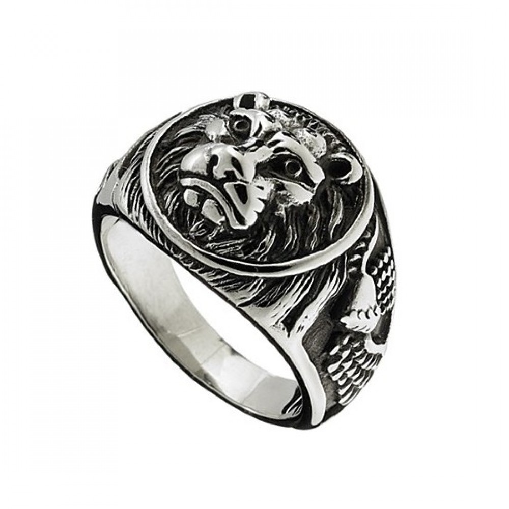 Δαχτυλίδι από ατσάλι με ανάγλυφο κεφάλι λιονταριού