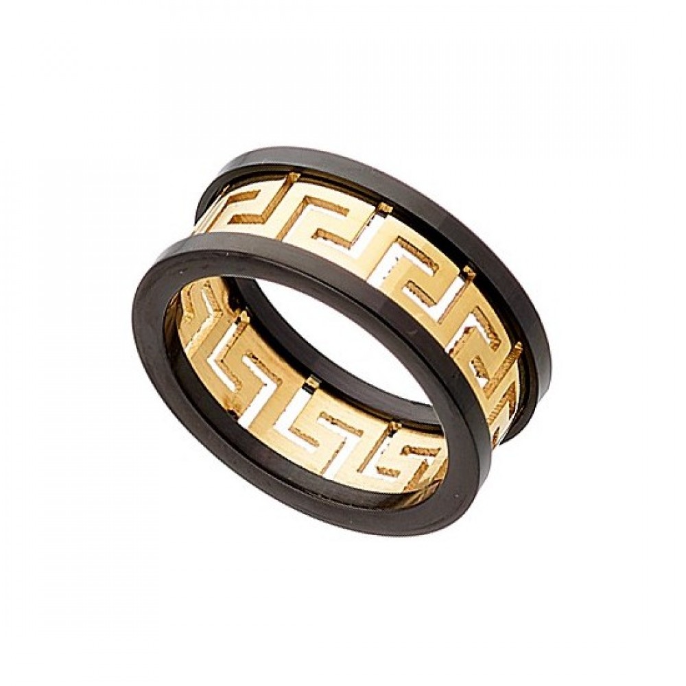 Ατσάλινο δαχτυλίδι με μαίανδρο με μαύρο και χρυσό χρώμα