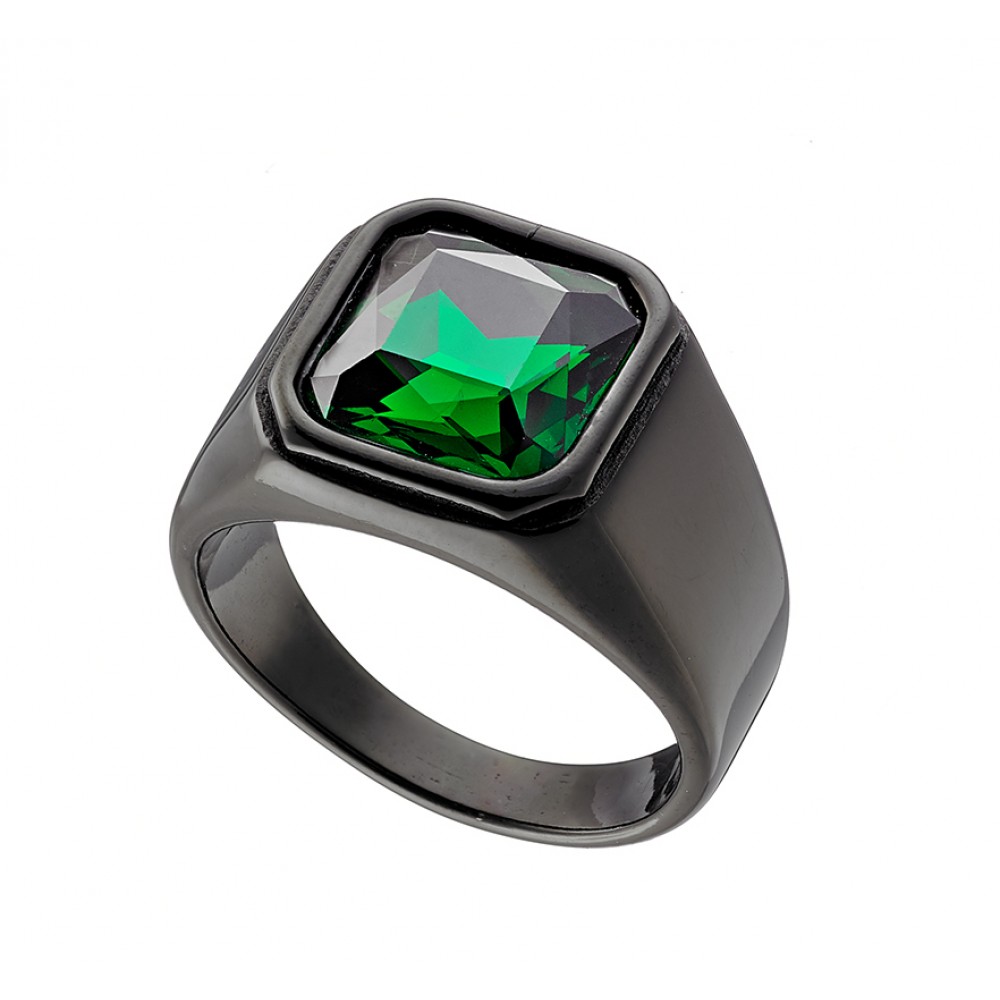 Δαχτυλίδι σε μαύρο χρώμα κατασκευασμένο από ατσάλι 316L με πράσινη πέτρα