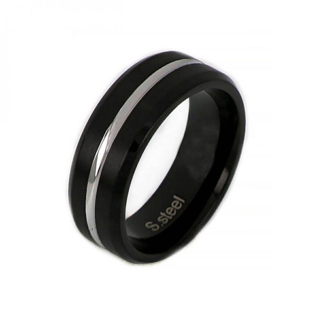Δαχτυλίδι από ατσάλι σε μαύρο χρώμα με γραμμή στη μέση