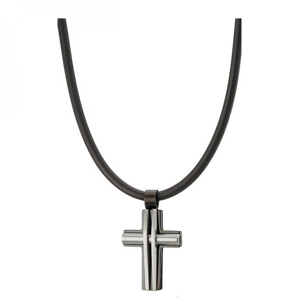 • Ατσάλινος σταυρός με κορδόνι από καουτσούκ