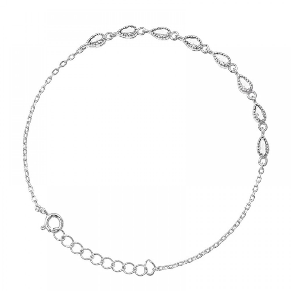 Αλυσιδάκι για το χέρι με λευκές πέτρες ζιργκόν σε σχήμα σταγόνας