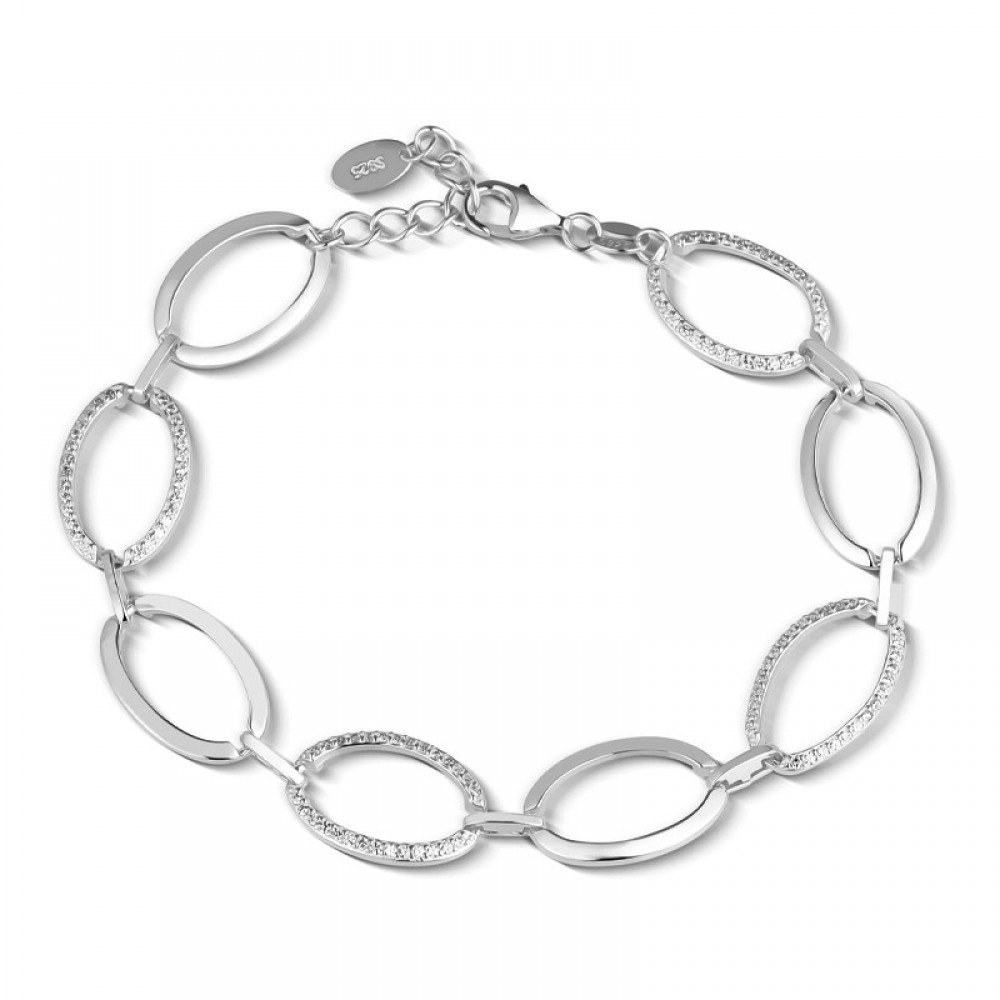 • Ασημένιο βραχιόλι με κρίκους και πέτρες ζιργκόν