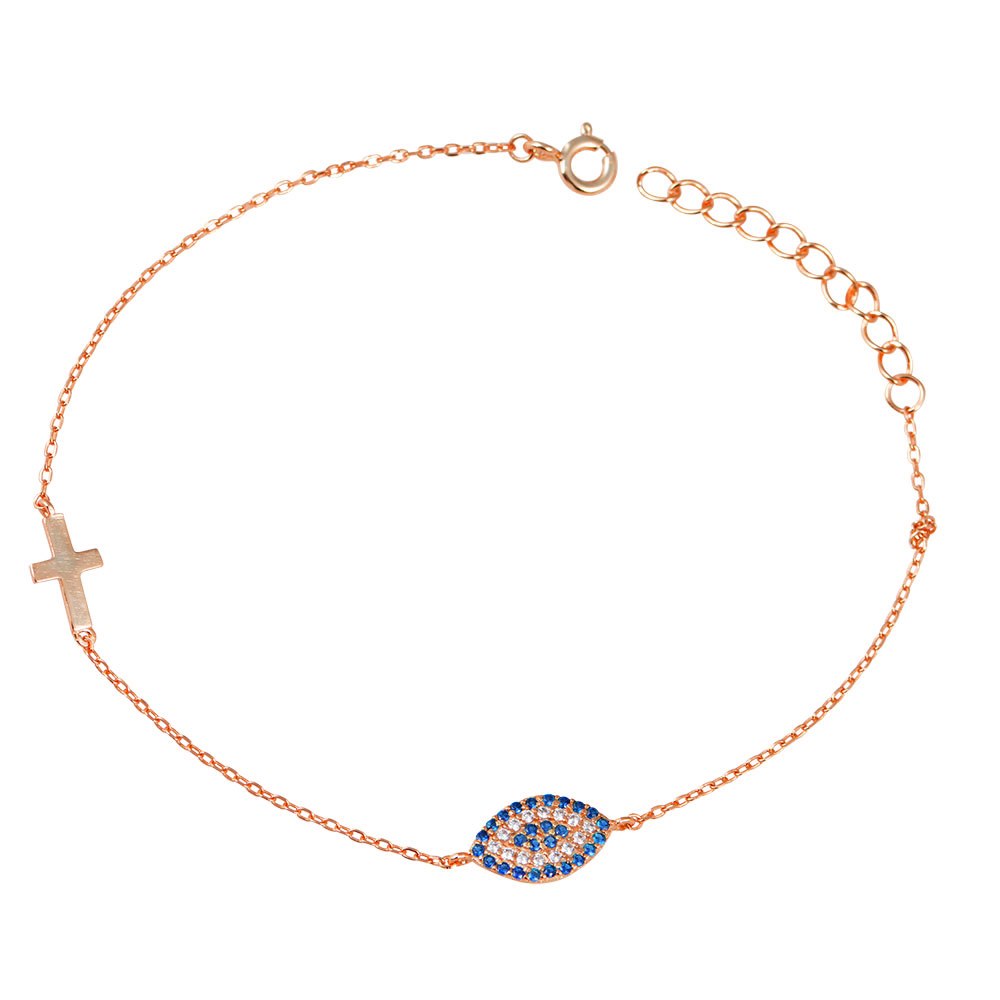 Ασημένιο βραχιόλι με μάτι και σταυρό