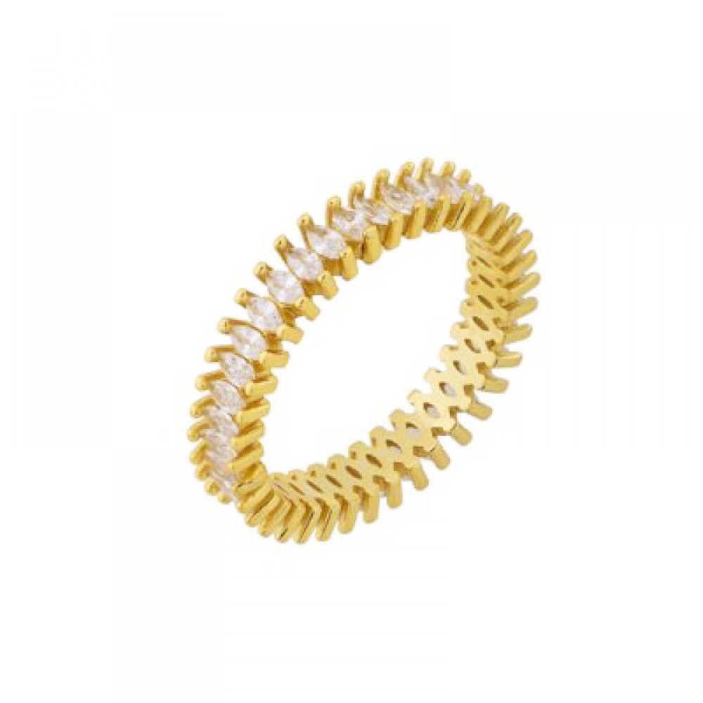 Ασημένιο και επιχρυσωμένο δαχτυλίδι ολόβερο με πέτρες ζιργκόν