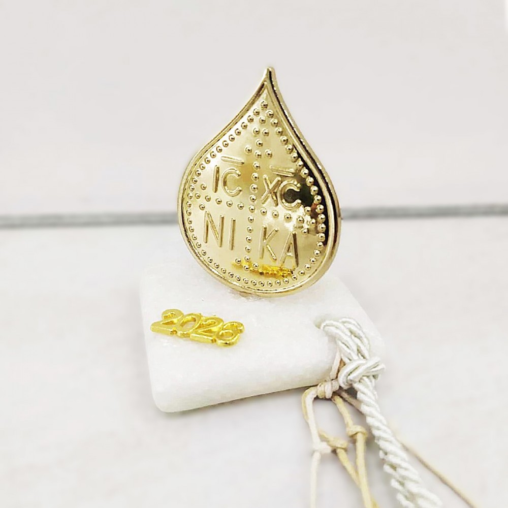 Επιτραπέζιο γούρι με μεταλλικό κωνσταντινάτο πάνω σε λευκή πέτρα