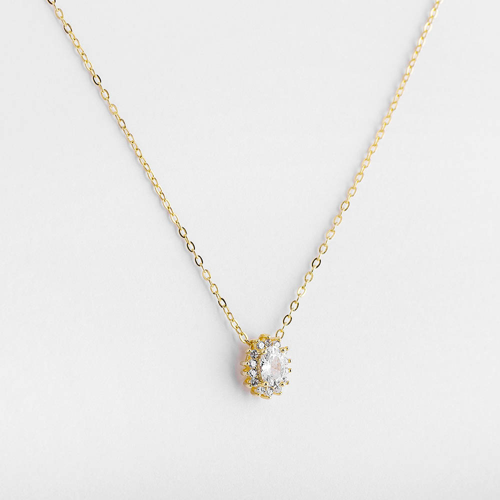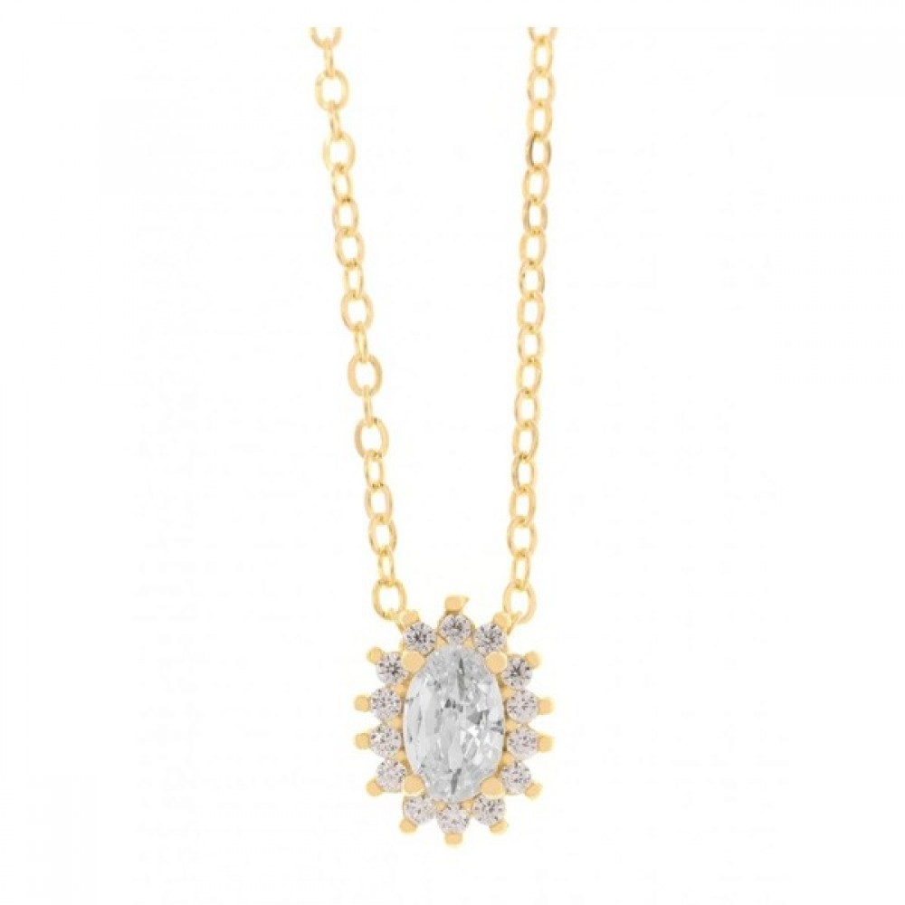 Ασημένιο και επίχρυσο κολιέ ροζέτα με λευκές πέτρες