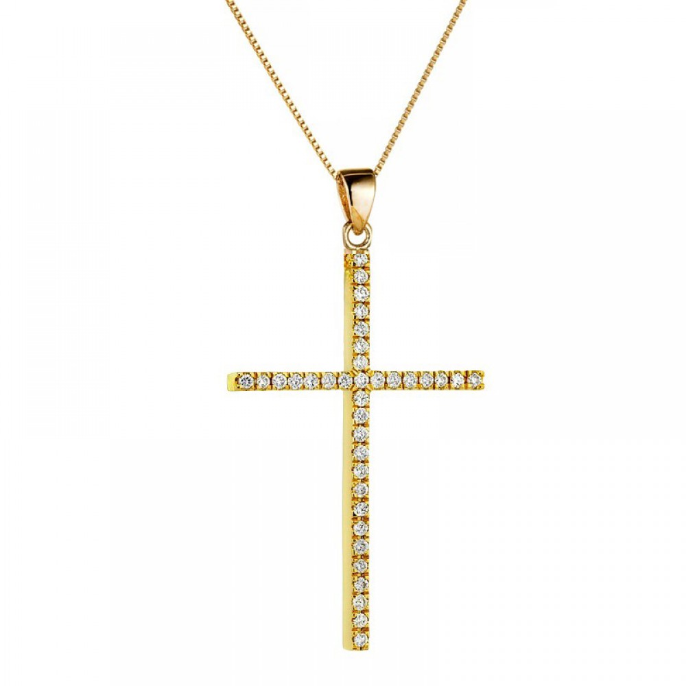 Αλυσίδα με μεγάλο και ΄λεπτό σταυρό (σχέδιο σπίρτο) διακοσμημένος με πέτρες ζιργκόν σε λευκό χρώμα