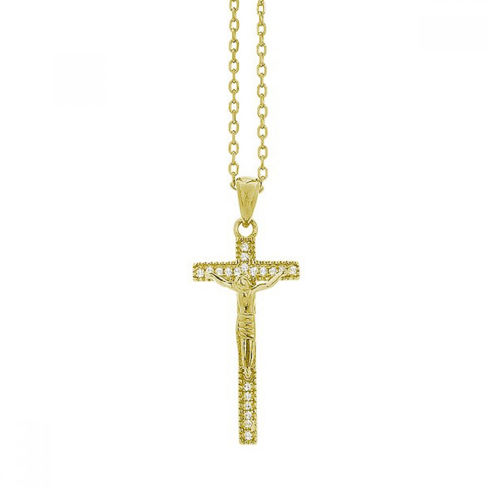 Αλυσίδα με κρεμαστό σταυρό με τον Εσταυρωμένο , από ασήμι επιχρυσωμένο