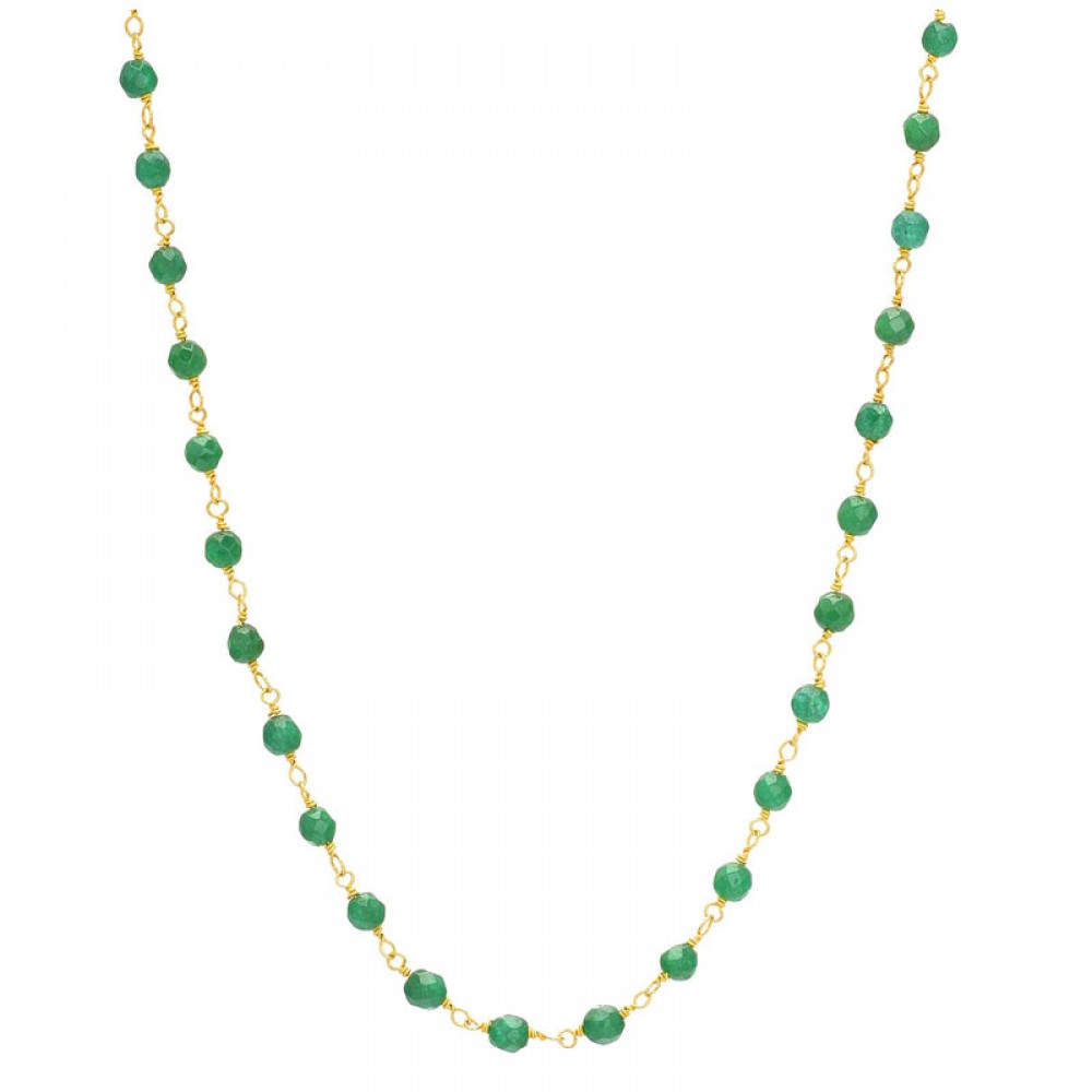 Ασημένιο και επιχρυσωμένο κολιέ - ροζάριο με ημιπολύτιμες πέτρες αβεντουρίνη