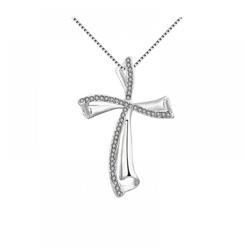 Αλυσίδα με κρεμαστό σταυρό διακοσμημένο με πέτρες ζιργκόν σε λευκό χρώμα