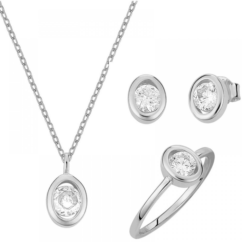 Διακριτικό σετ (κολιέ - σκουλαρίκια - δαχτυλίδι) με οβάλ μονόπετρο