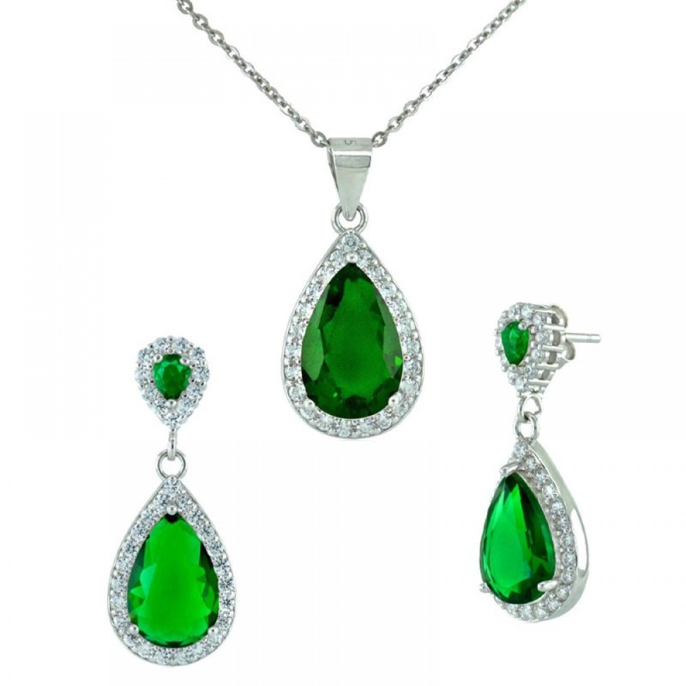 • Ασημένιο εντυπωσιακό σετ (κολιέ - σκουλαρίκια) με πέτρες ζιργκόν σε πράσινο και λευκό χρώμα