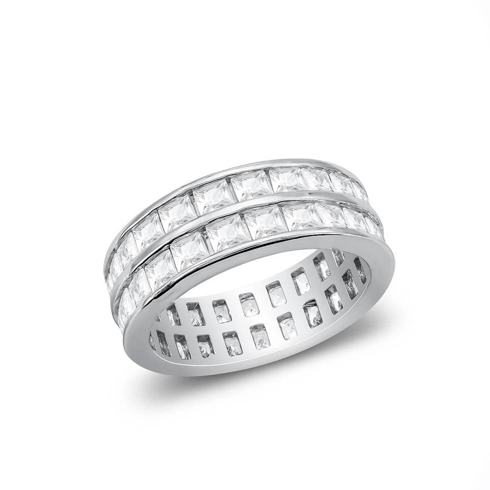 Ασημένιο φαρδύ δαχτυλίδι ολόβερο με δύο σειρές πέτρες.