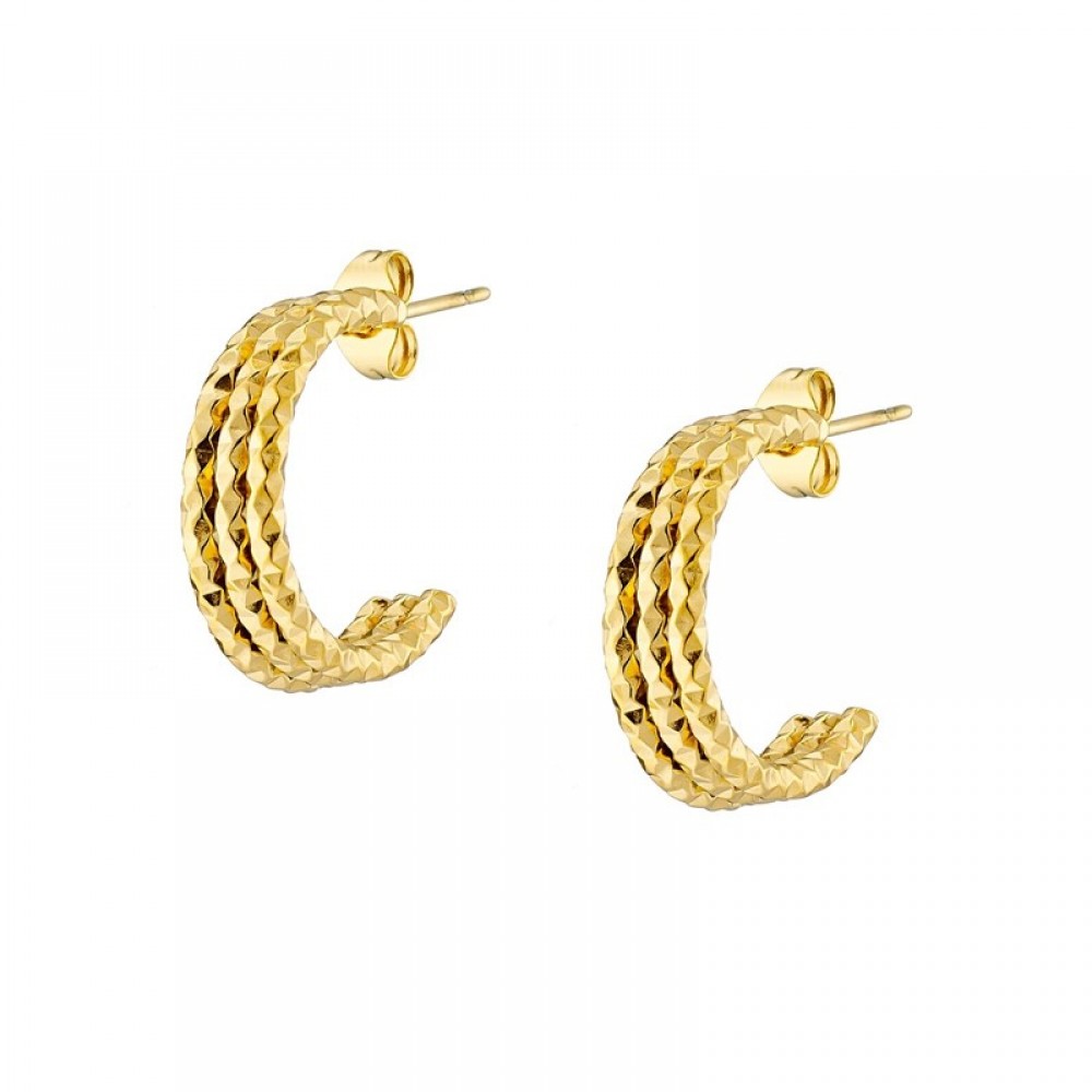 Ατσάλινοι επίχρυσοι κρίκοι κουμπωτοί με διαμανταρισμένο σκάλισμα